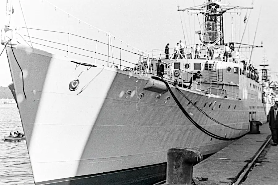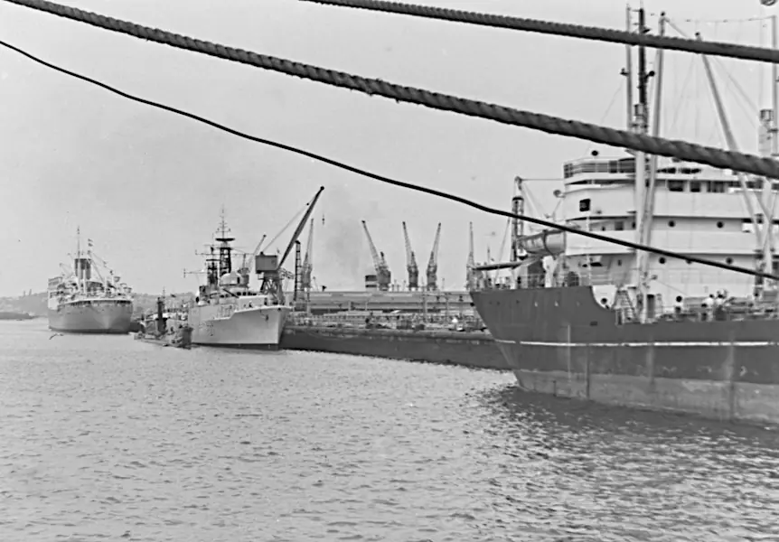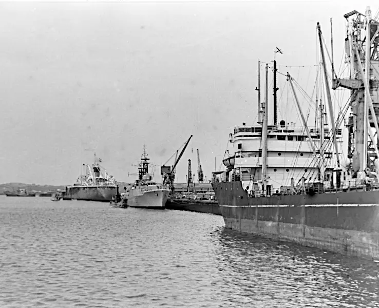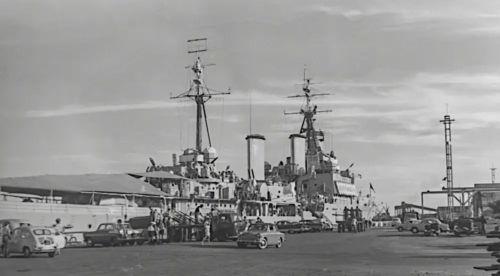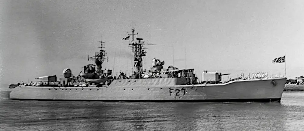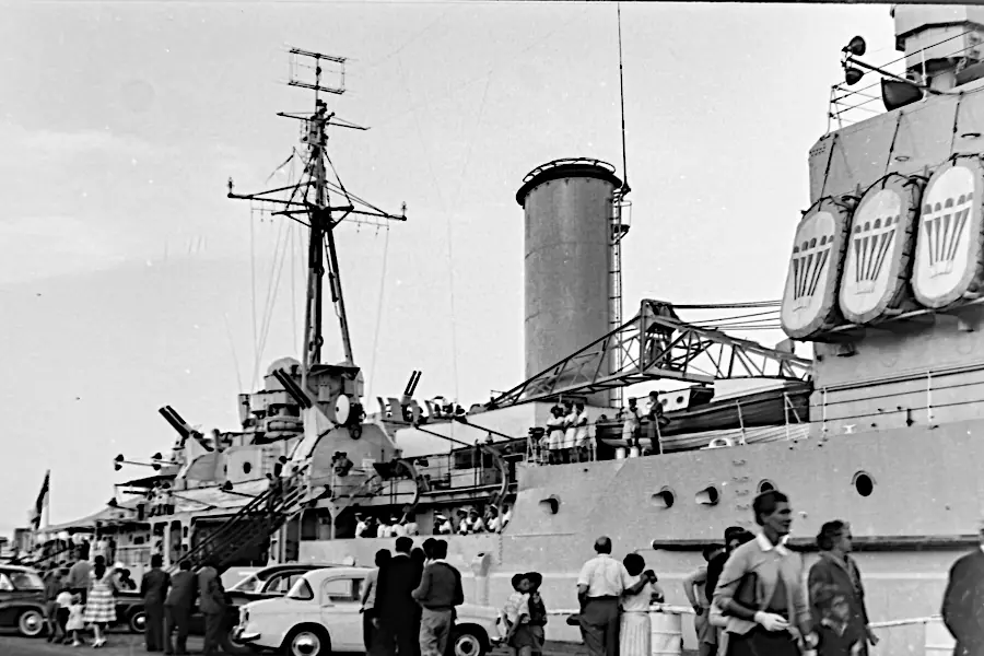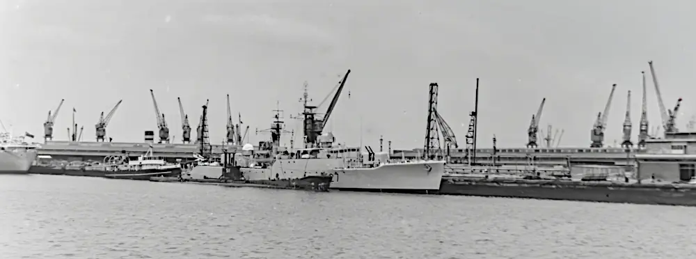 In February 2026, Claude Leroy sent me a wonderful set of photographs taken in Durban, South Africa taken in 1959 or 1960. Between us we could not find any records confirming an international naval exercise where HMS Albion, HMS Gambia, and Royal Navy ships with pennant numbers F27, F157, F332, and M1214 docked together in Durban, South Africa.