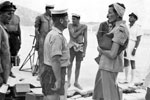 At 0800 on Friday, August 14, Earl Mountbatten, accompanied by Lady Mountbatten and staff officers, arrived in the bay in a R.A.F. Sunderland to view the damage and coordinate rescue work with the local Greek authorities. During all this time, Dakotas of the Greek Air Force were circling the town dropping food, medical supplies, and bundles of clothing to the survivors who were grouped around the outskirts of the town. Helicopters were landing on open spaces as well and taking the more seriously wounded back to the mainland.