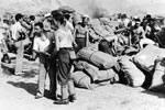 U.S. Marines and Navy corpsmen formed a medical team to handle inoculations, sanitation, contamination problems and water purification. In addition, they bound up broken limbs and helped deliver three babies.