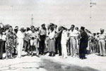 Massed bands played amidst huge banner-waving crowds from every vantage point around the harbour. Almost as soon as Britannia had secured the Royal Barge slipped away from her side and sped for shore. Large crowds clapped the Royal car as it drove up Crucifix Hill to Floriana where the Queen unveiled a memorial to airmen killed in the Mediterranean during the war. Three thousand relatives of these men had been flown or shipped to the island to watch the ceremony. This was the first of Her Majesty's many official engagements, which included the Services' Parade to which the old lady contributed.
