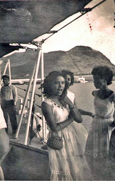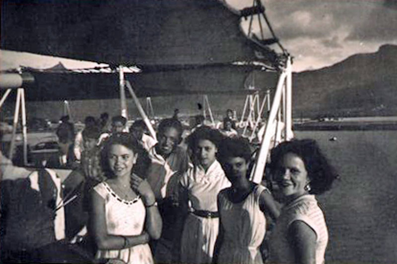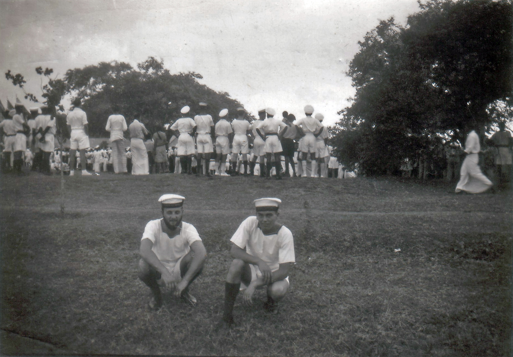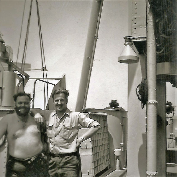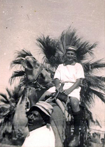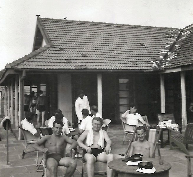 It was not probably common knowledge on board, but the Chaplain, Rev. H W Welsh, had gathered together a few old Boy Scouts and formed a Deep Sea Rovers troop, and arranged a few meetings with local Scout troops in our ports of call. One such meeting was at Zanzibar where we were shown the site of the old slave market and then visited an orange grove (lovely fresh oranges straight off the tree!). There were also clove trees, and we each bit into a clove! An old building on the grove had been taken over by a species of large bats, and the door was gently opened to reveal hundreds of bats hanging from the roof, what a sight for Sir Richard Attenborough.