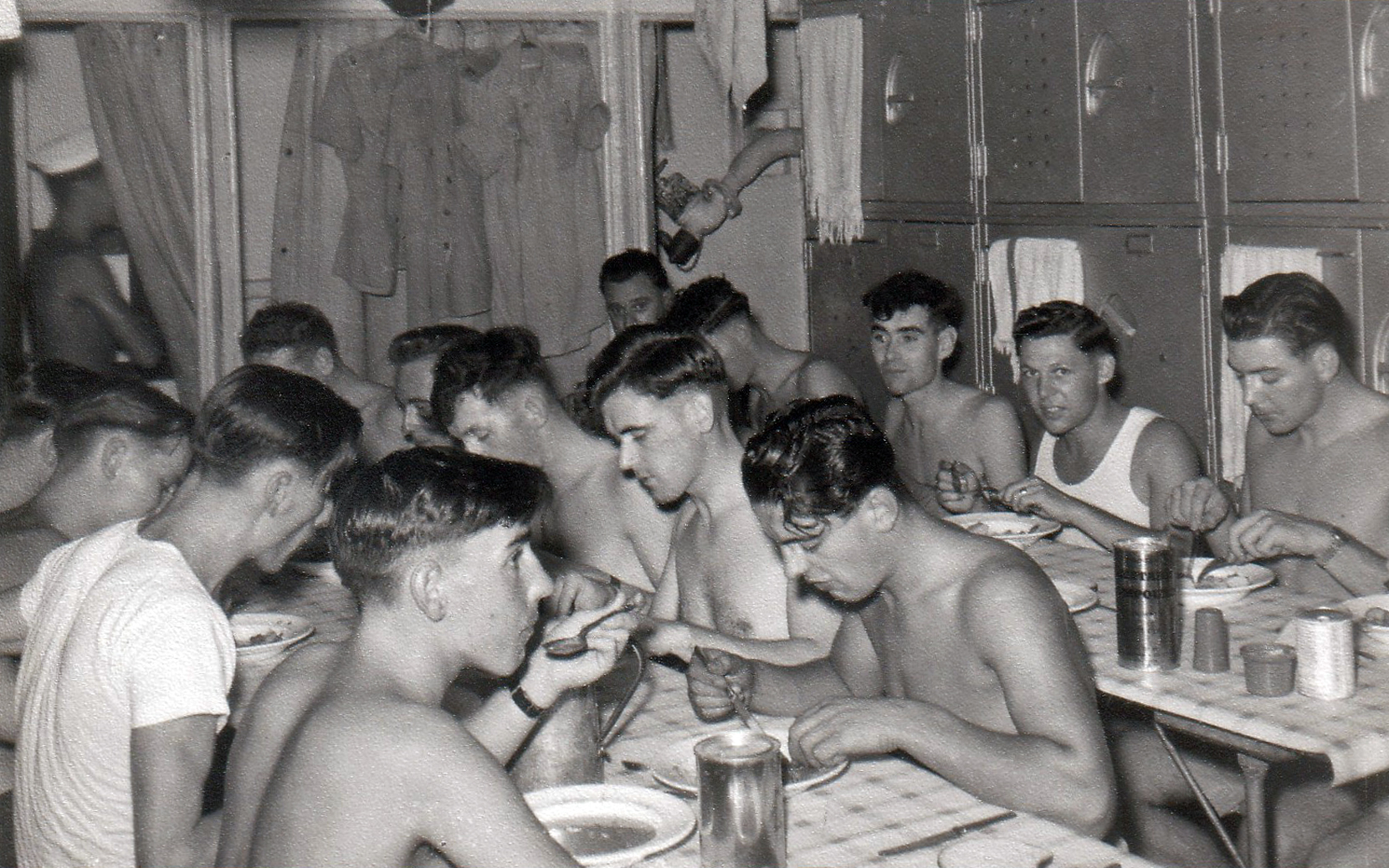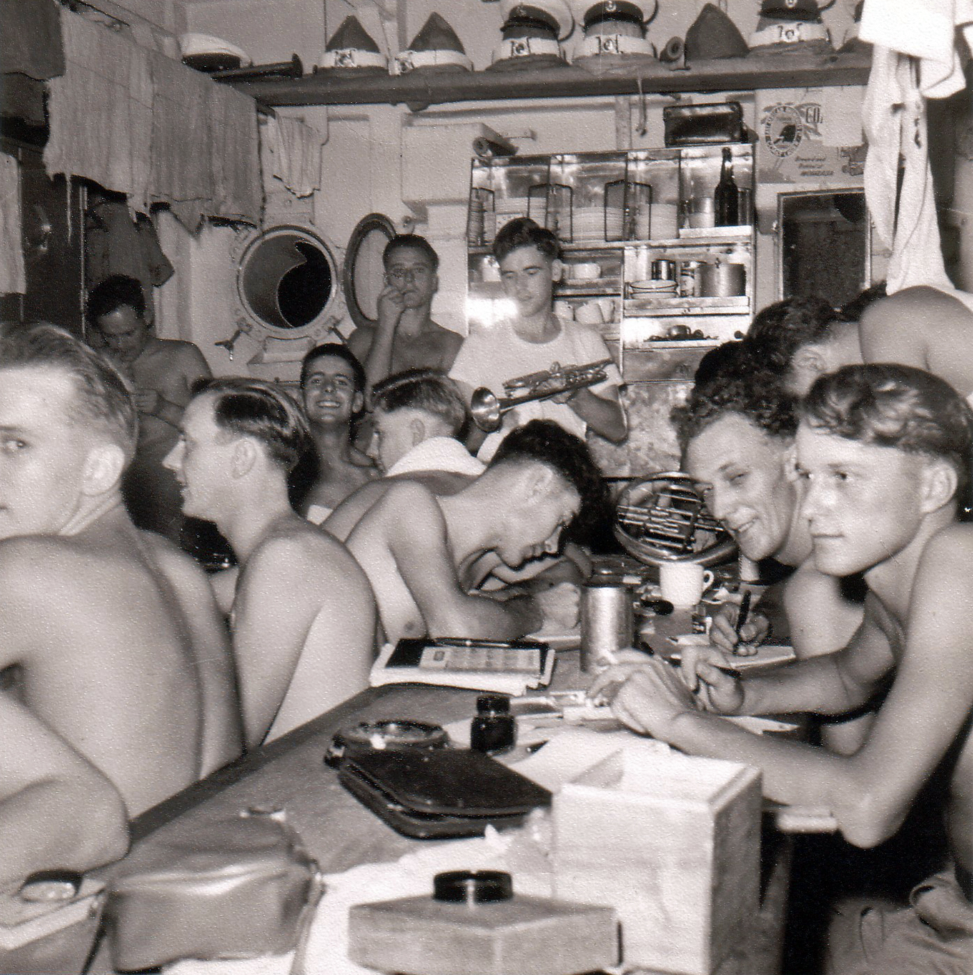 This image was supplied by Royal Marine bandsman Dave Webster and is of the band mess in August 1955: