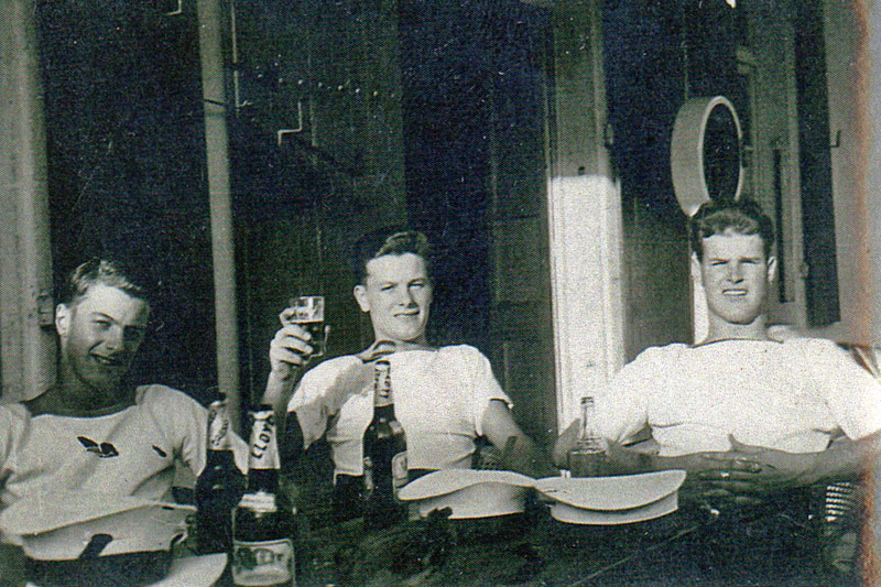 This photo is from Stephen Bentley and is mostly of the Electrical Branch. It was taken in the British Club in Abadan, Iran, just up the river North of the Persian Gulf in early November, 1955. Steve is on the extreme right at front and says that we had to be off the streets by 12 midnight otherwise you would be shot (curfew). Most of the British out there were Scots oil rig engineers.