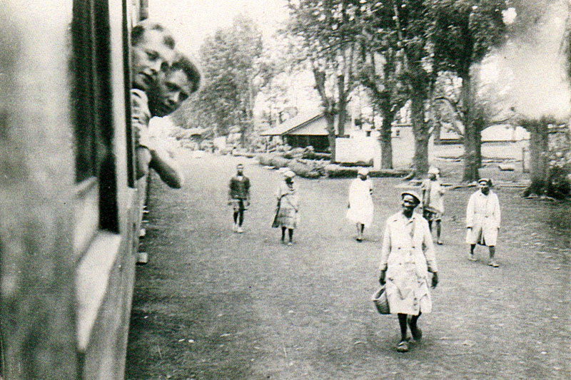 We started off for Nairobi at 4pm last Saturday by train and arrived there about 9.30am next day (Sunday), having slept and had meals provided on the train. We were given a civic welcome there by the lord mayor etc. From there we split up for our various destinations. Our party, about 30, went by coach to Nanyuki, which is 135 miles up country from Nairobi.