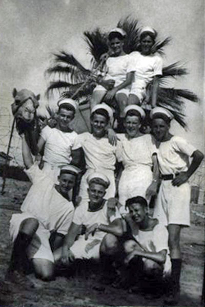 Back row, standing from left to right: B/M Graham Shipway, two unknown Arab technicians, seated Frank Tomlin, Vic Asher, standing Eric Hayward, Brian Oates, Pete Howse