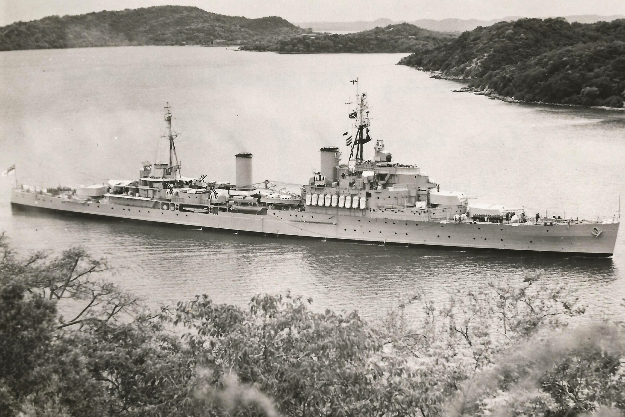 HMS Gambia at Trincomalee, Sri Lanka in late August 1955 after a Joint Exercises at Trincomalee (JET). Photo kindly submitted by Andrew Lobb