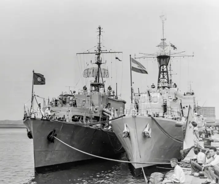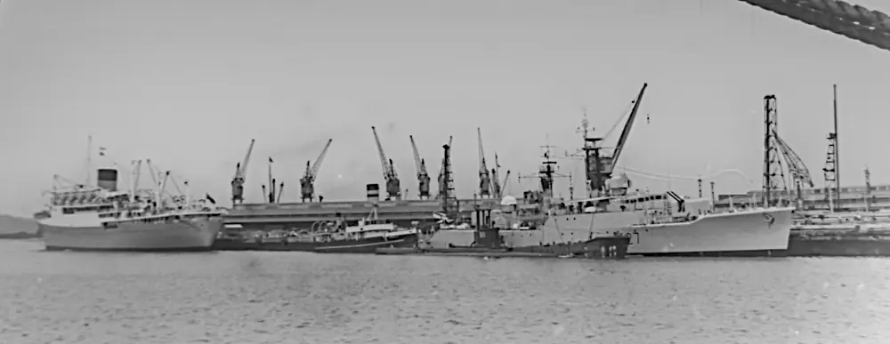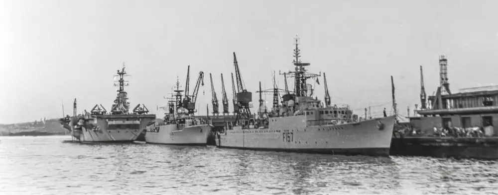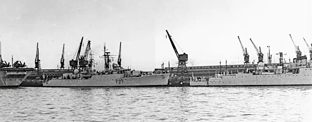 In February 2026, Claude Leroy sent me a wonderful set of photographs taken in Durban, South Africa taken in 1959 or 1960. Between us we could not find any records confirming an international naval exercise where HMS Albion, HMS Gambia, and Royal Navy ships with pennant numbers F27, F157, F332, and M1214 docked together in Durban, South Africa.
