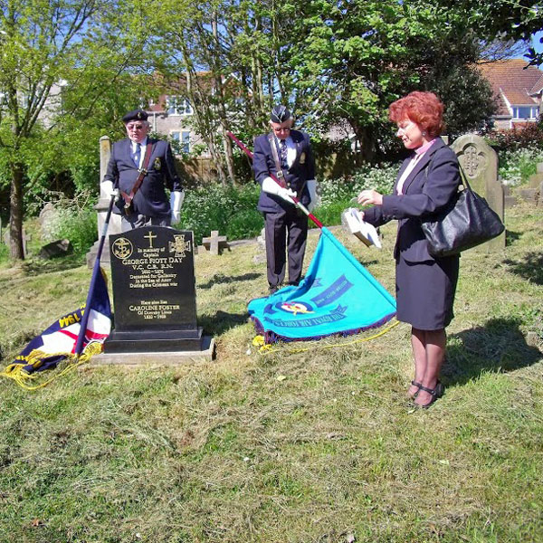 Victoria Cross research team, father and son, John and Alan Rider rediscovered the unmarked grave and, with the help of Weston Town Council, paid for a new Blue Plaque at the hotel and put a headstone on the grave site. The new headstone was unveiled on May 14, 2002 with members of the HMS Gambia Association acting as Honour Guard.