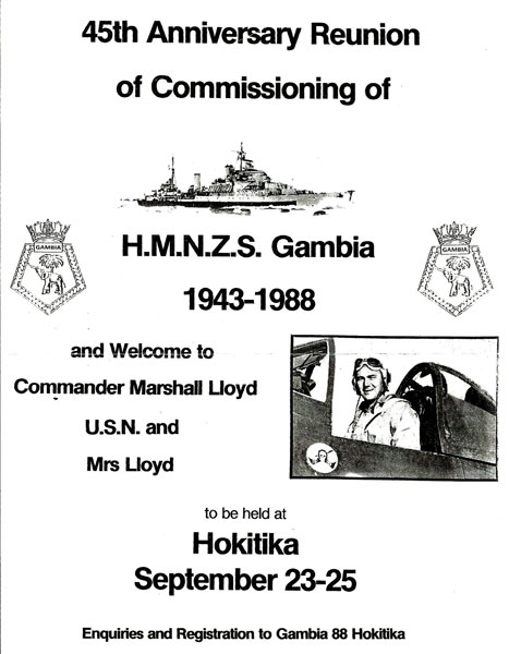 Reunion - 45th Anniversary Reunion of the Commissioning of HMNZS Gambia on September 23-25, 1988 at Hokitika, New Zealand.