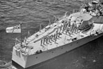 HMS Gambia's sister ship, HMS Bermuda, showing her transom stern and the replaced X-turret